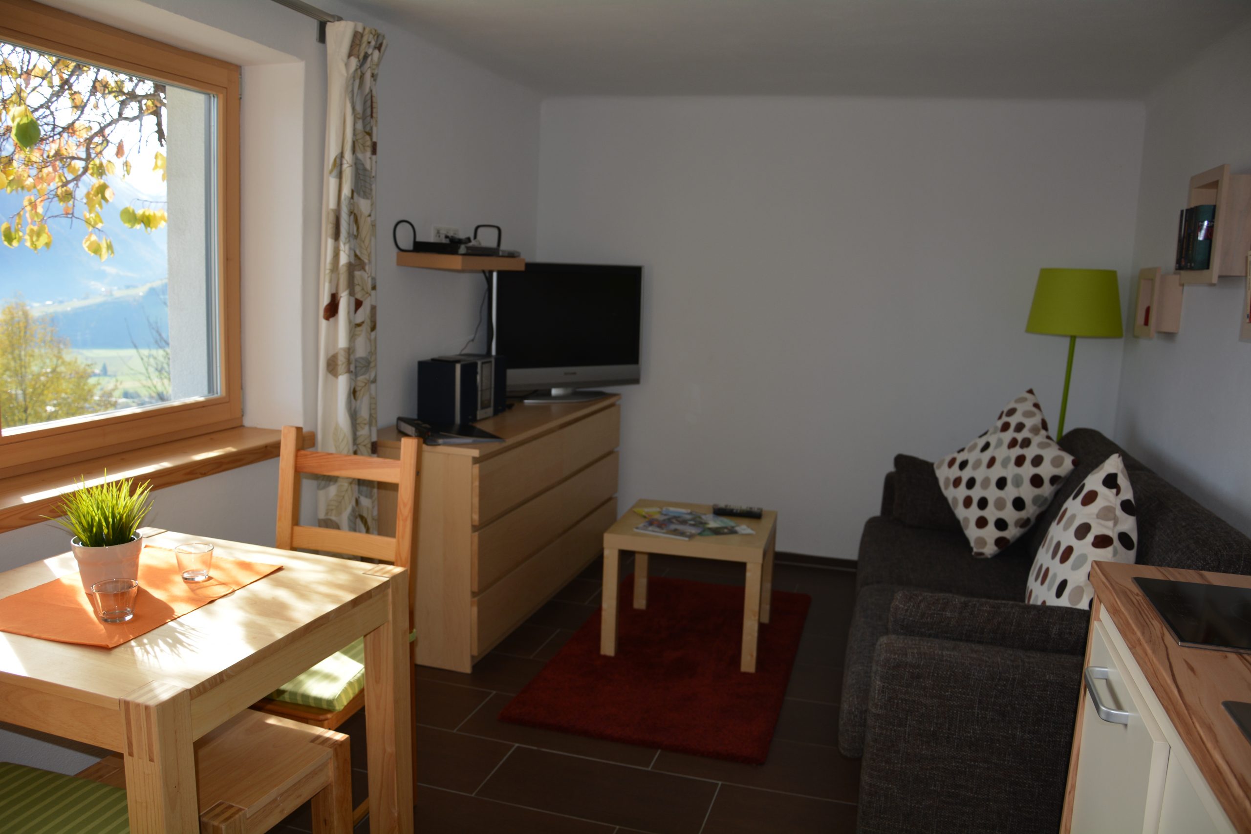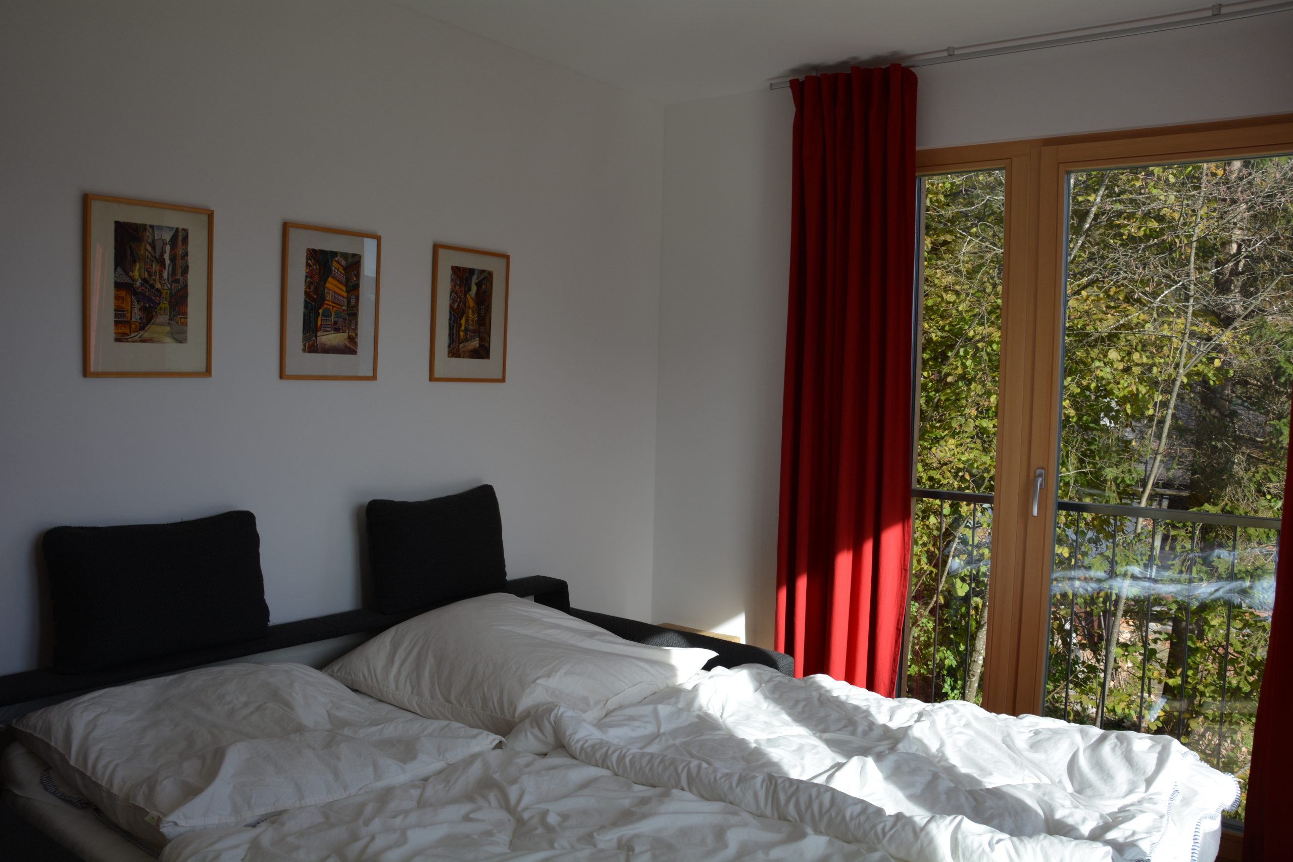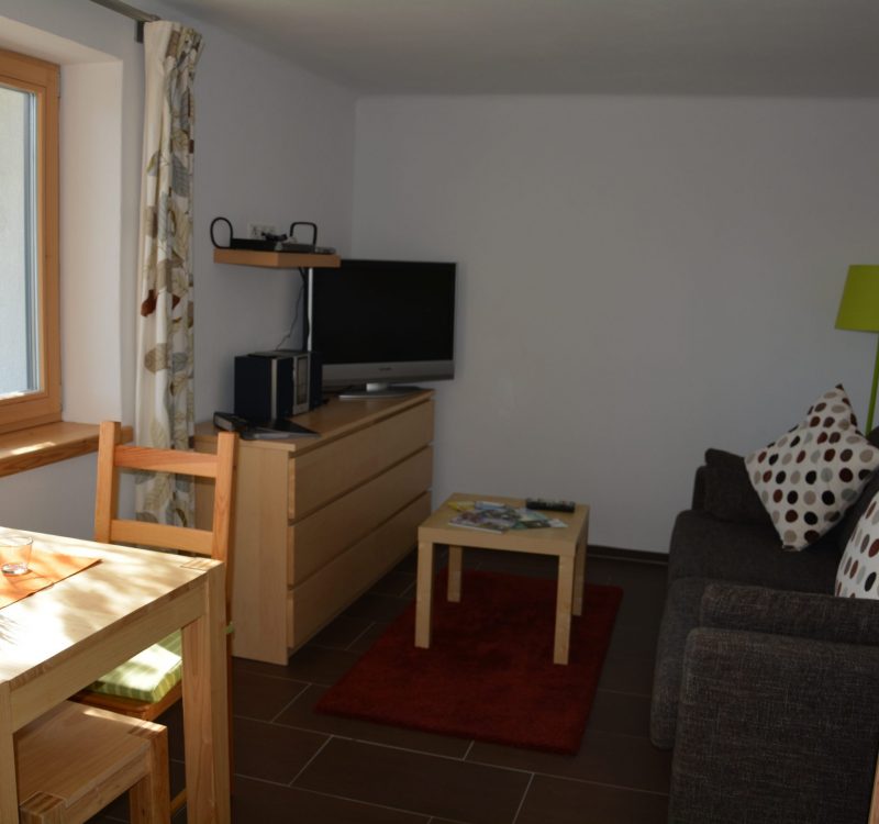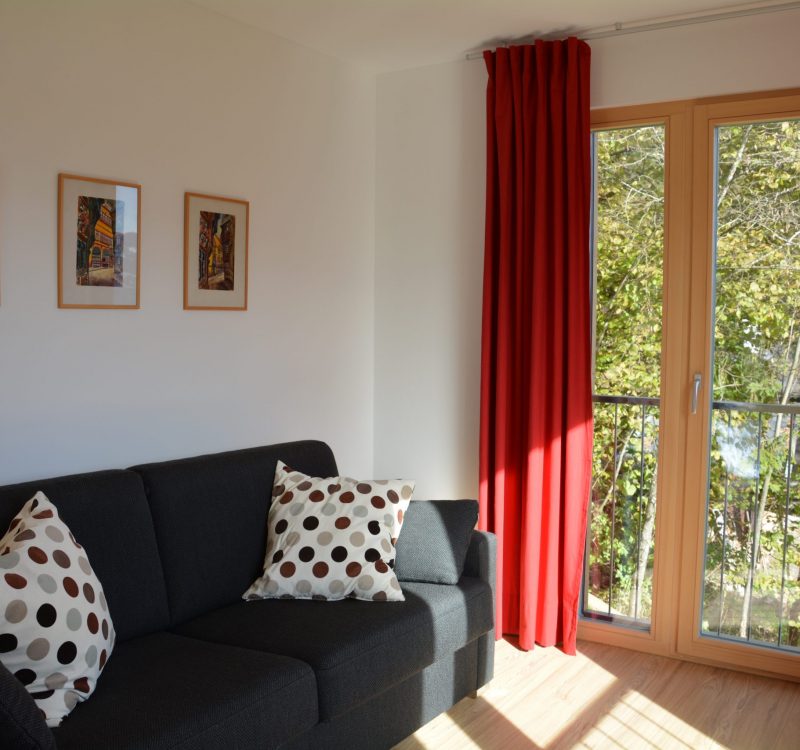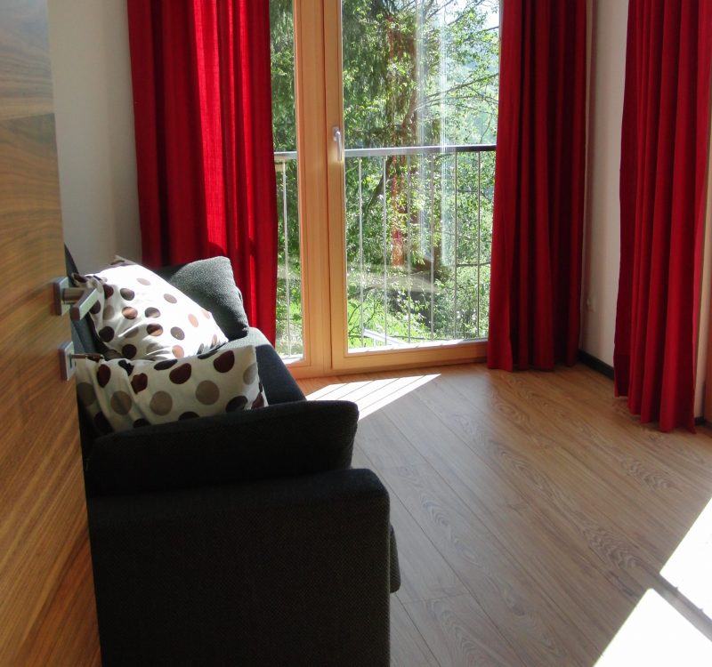- Ein Zimmer mit Ausziehcouch (170×200) mit fantastischer Aussicht und Schreibtisch