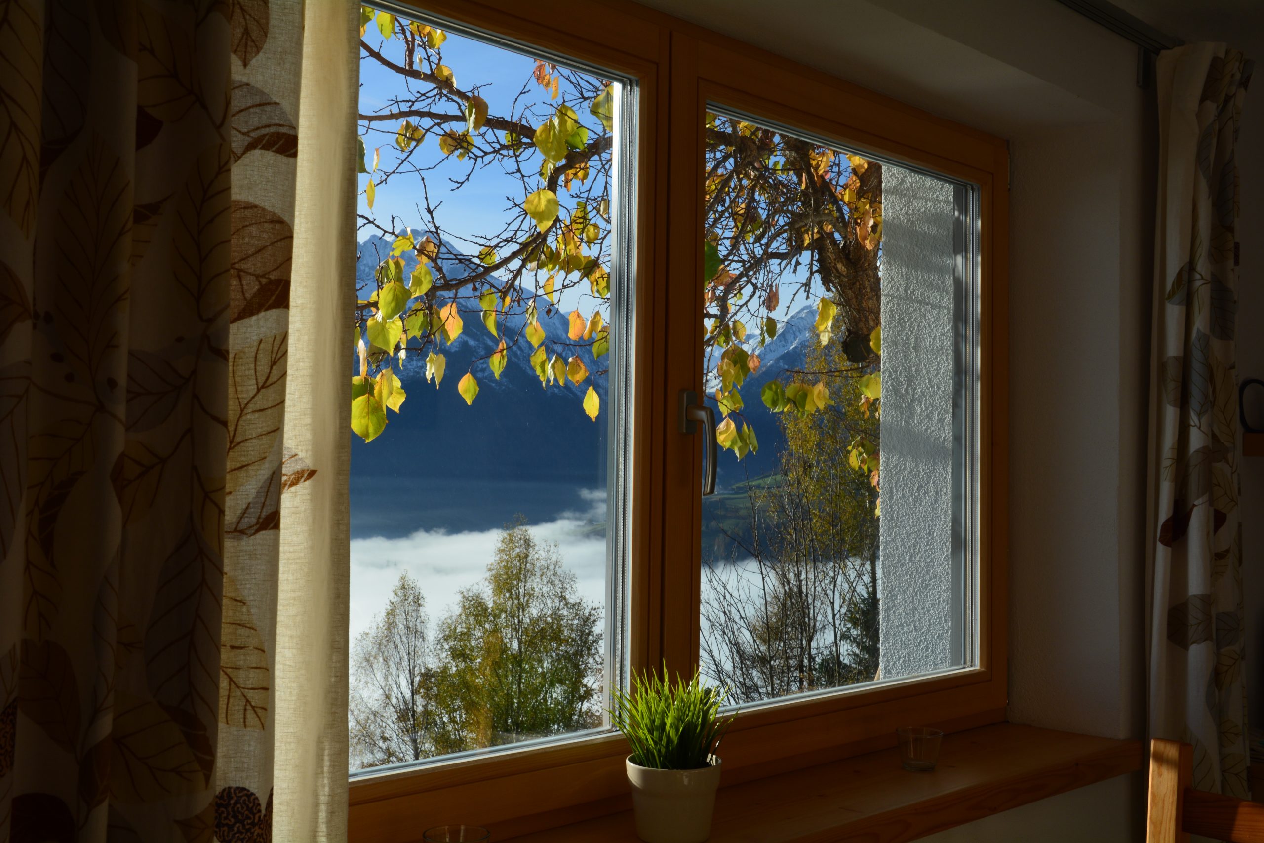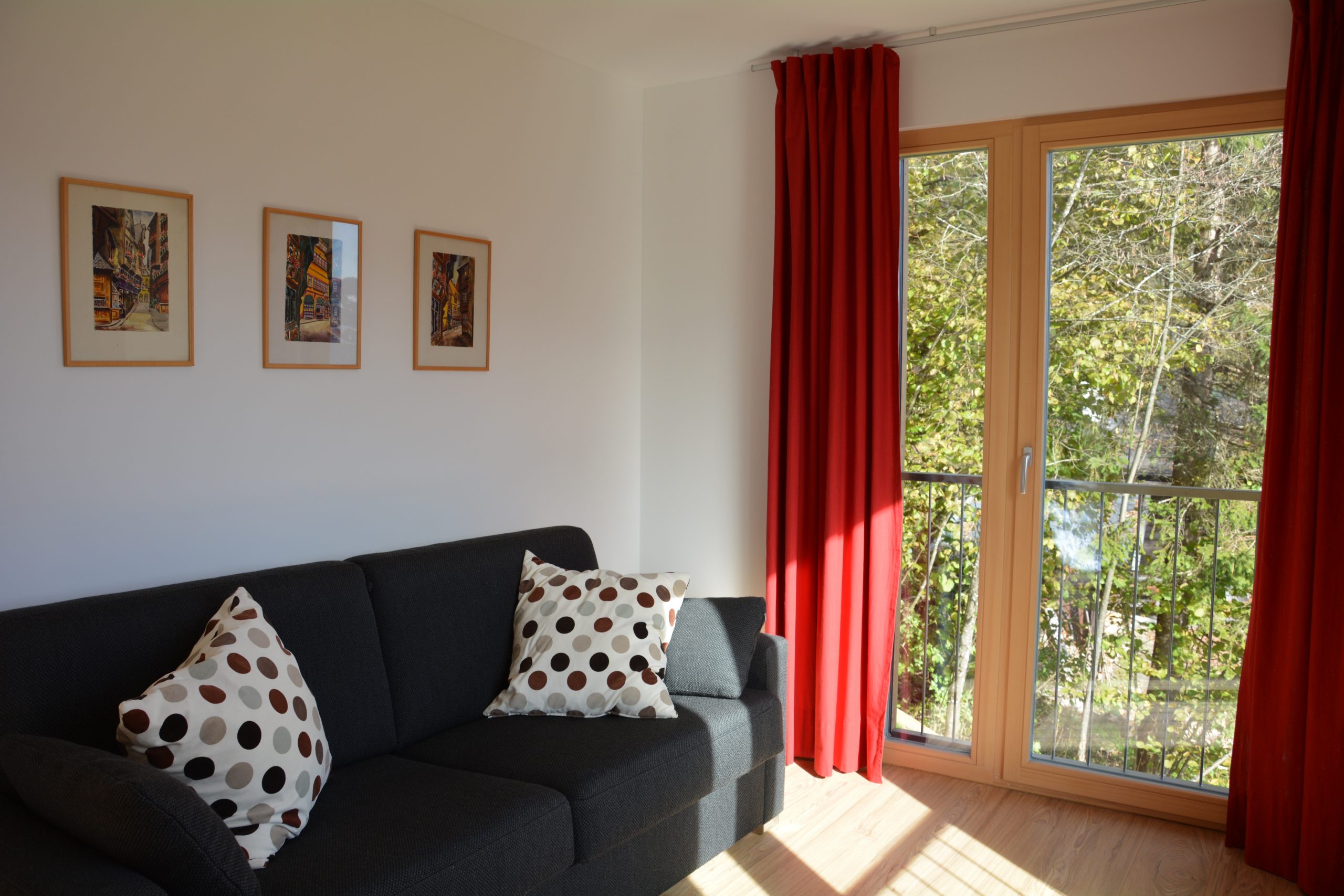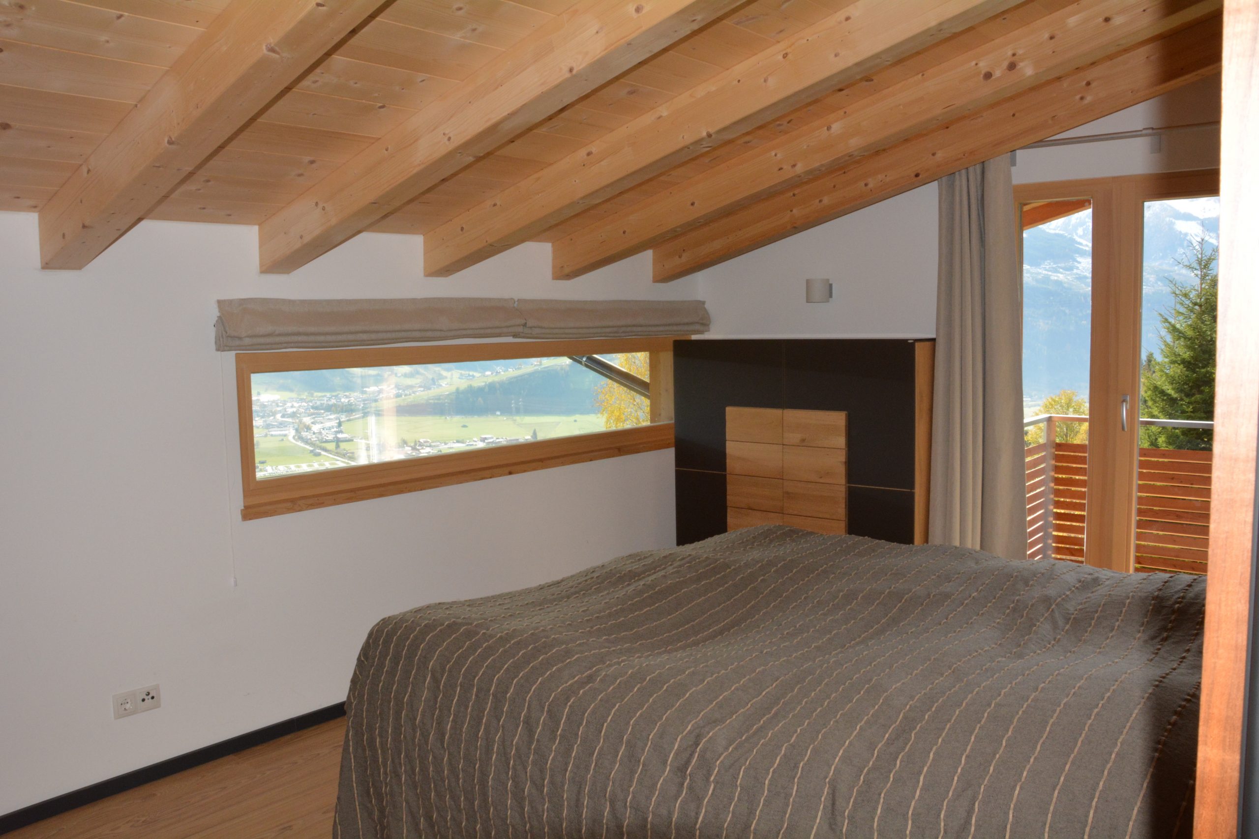 - Ein Zimmer mit Ausziehcouch (170×200) mit fantastischer Aussicht und Schreibtisch