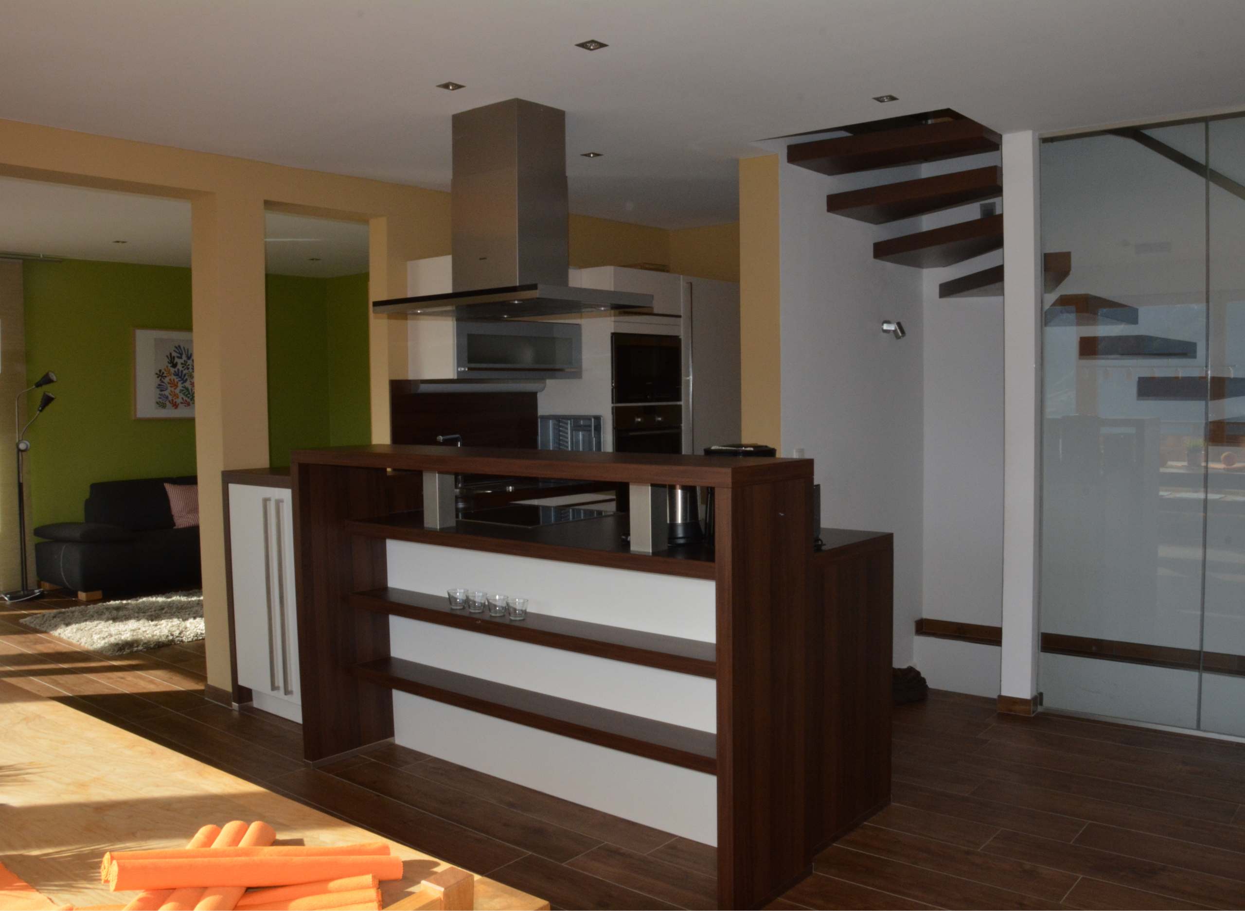 - Moderne offene Küche mit Bar zum Essbereich