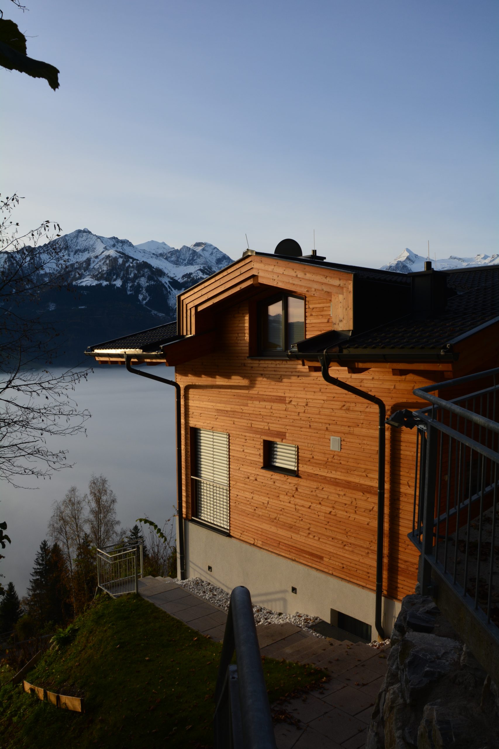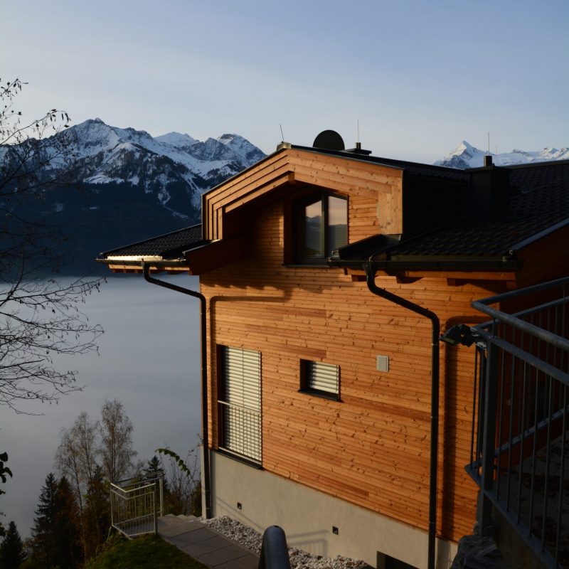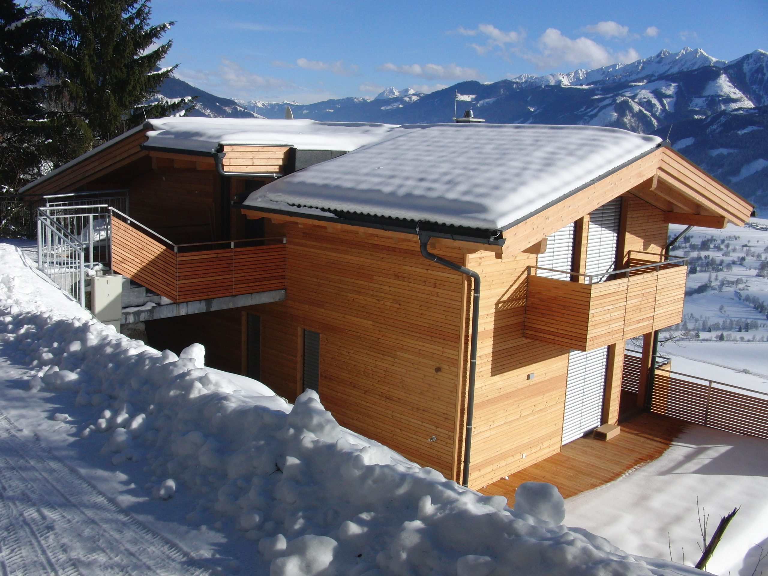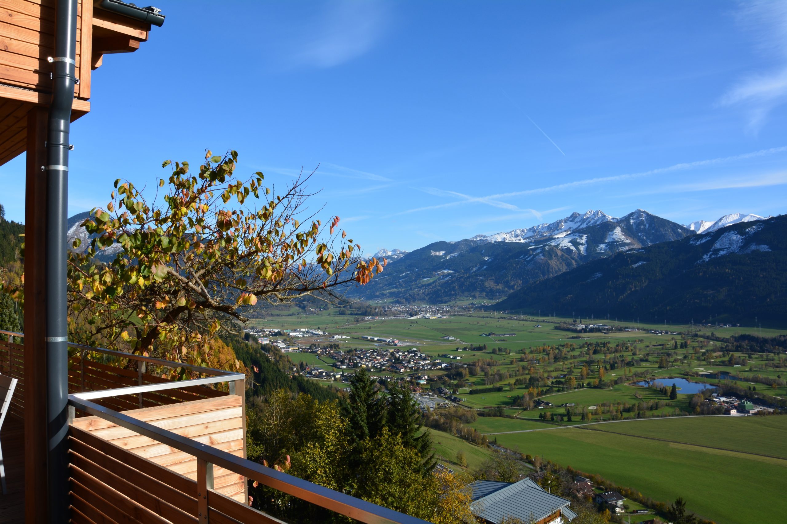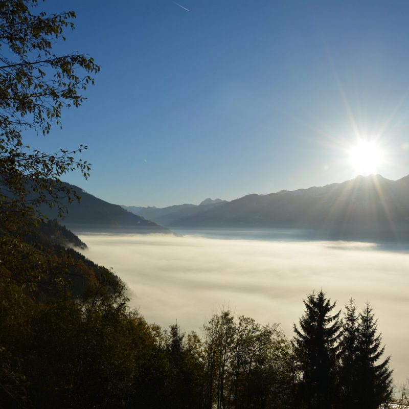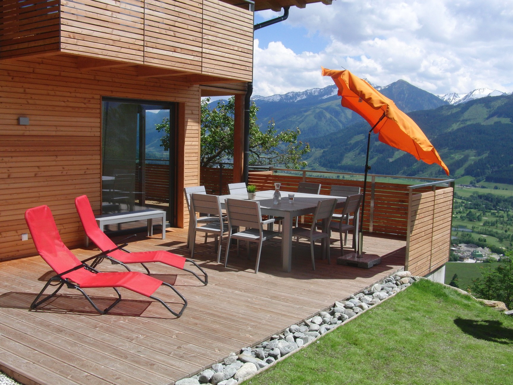 Besonders zu erwähnen ist die Südterrasse, die am Morgen schon in der Sonne liegt und so bei schönem Wetter zum Frühstück einlädt. Auch am Abend ist der Blick auf das Lichtermeer von Kaprun sehr beeindruckend. Da sie zum Teil unter dem Balkon der oberen Wohnung liegt, ist sie sehr lauschig und von der oberen Wohnung nicht einsehbar.