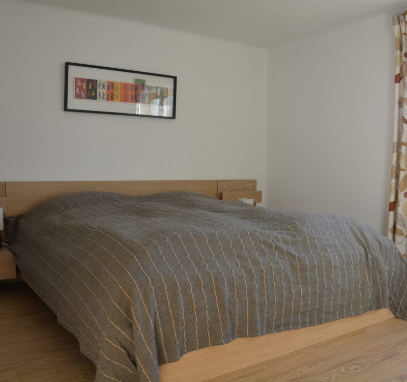 Die obere Wohnung verfügt über 8 Schlafplätze in 4 Doppelzimmern. Die drei Zimmer im Obergeschoss sind mit Doppelbetten und das Schlafzimmer im Erdgeschoss ist mit einer Schlafcouch für zwei Personen ausgestattet.