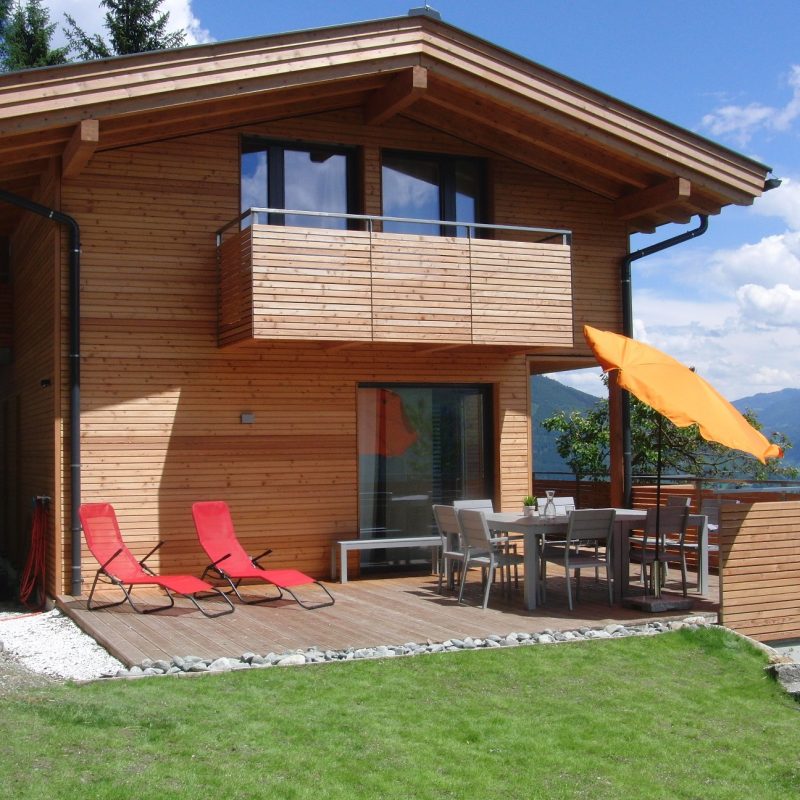 - Eine große Holzterrasse mit zwei Tischen und Stühlen, Holzkohlegrill, Sonnenschirm, 2 Liegen. Ein Teil der Terrasse liegt lauschig unter dem Marillenbaum. Ein Stück ebenerdige Wiese lädt Kinder zum Spielen ein.